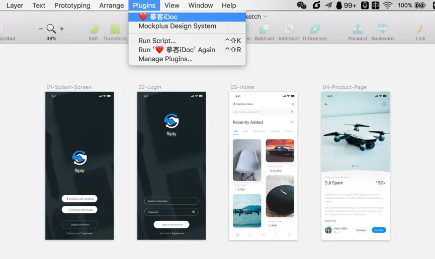 在摹客官网(www.mockplus.cn/download/id…)下载摹客 Sketch插件安装文件并点击进行安装。插件安装好后打开Sketch,在「Plugins插件」中找到摹客插件,选择并打开。