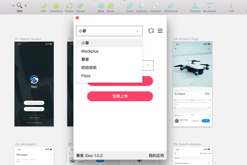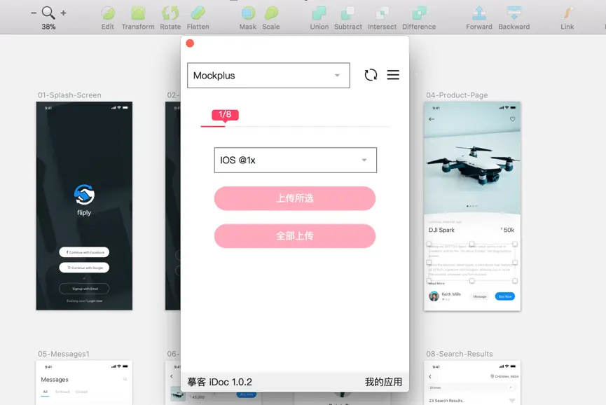 点击上传所选或全部上传便会将设计稿资源一键上传至摹客,设计师和开发便可登录摹客查看标注与下载切图等。