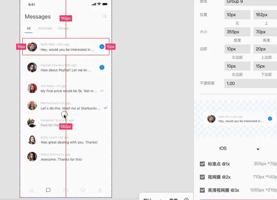 将Sketch或者PS中做的设计原稿上传到摹客后,便可轻松查看智能标注,显示百分比标注,并且一次还可选择多个图层;此外,还可以导出各种样式的代码。