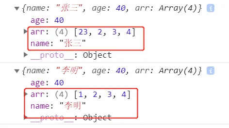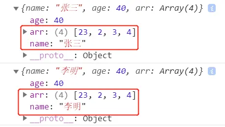 从输出结果可以看出,name属性和arr属性都改变了,但是拷贝前后对象互不影响。