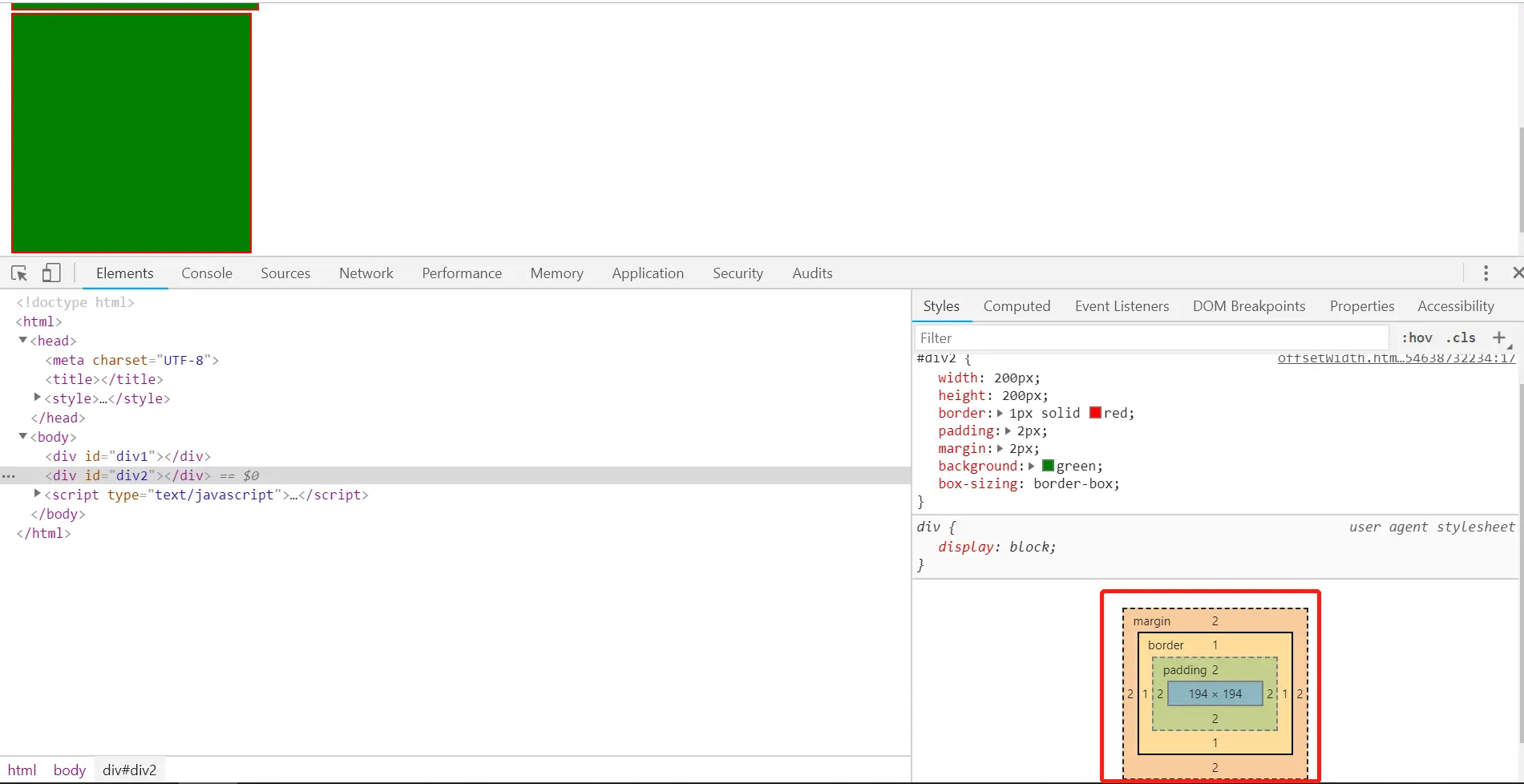元素的高 = height(包含padding-top + padding-bottom + border-top + border-bottom)