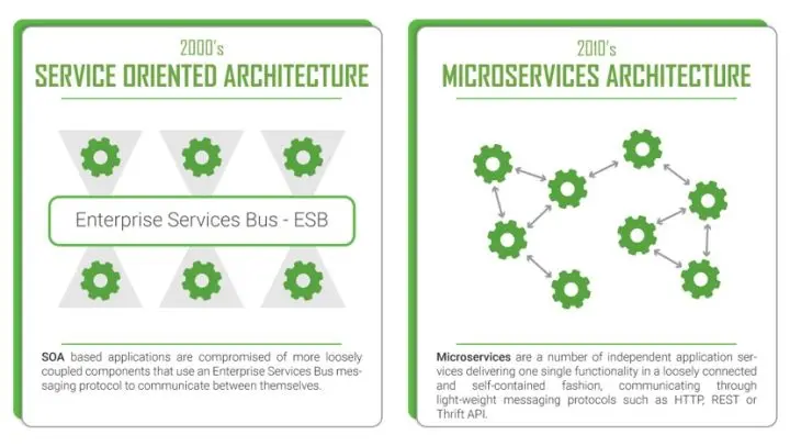 SOA VS 微服务架构,图片来自互联网