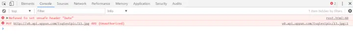 有时候我们出于某种需求,可能需要在前端使用 PUT 的方式进行浏览器上传。同样的,调试工具正常,但是代码嵌入网页上传时候控制台报错,接口返回 401 状态码,body 信息:need date header。