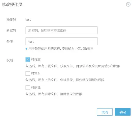 依旧是401错误,不过返回的 body 信息不同:user need permission。这是提示操作员没有权限,因为我们对操作员的权限控制有三个,分别是:读取,写入,删除。