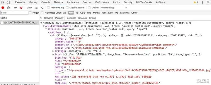 首先,我们来看下淘宝的接口,看看它比一般Ajax多了怎样的内容。