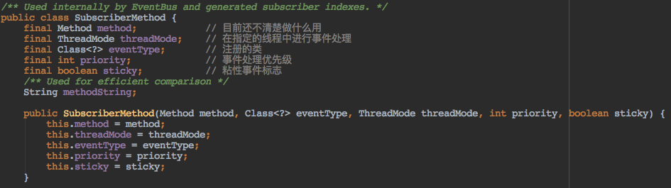 SubscriberMethod 类是一个实体类,将订阅相关的数据进行一个封装: