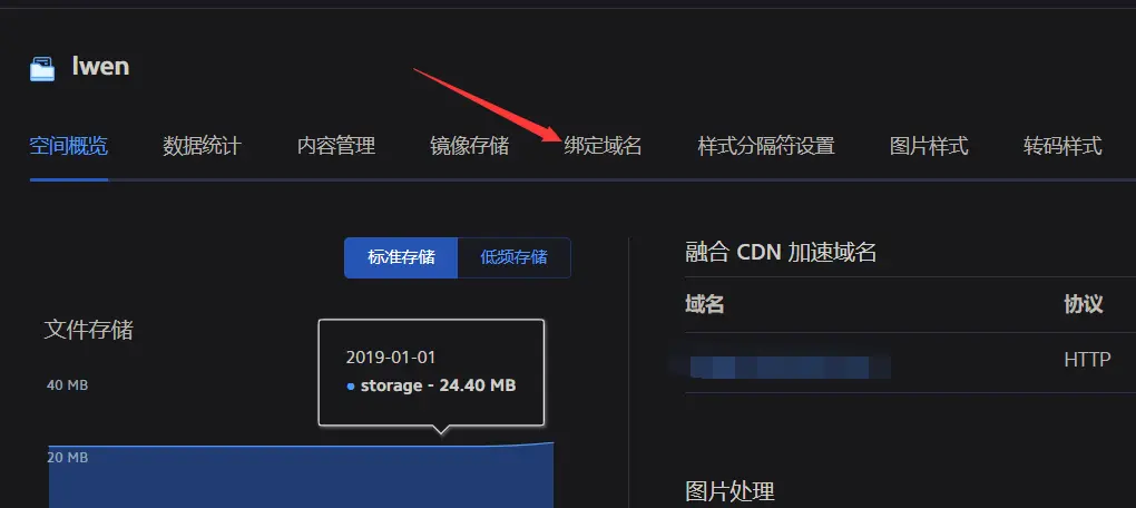 配置完空间以后就是需要关联域名,配置 CNAME