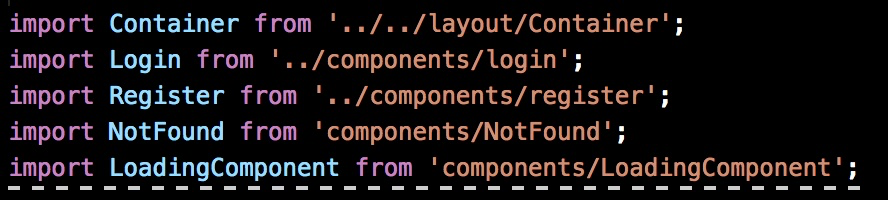- 第5、6行components是weback设置了的alias,NotFound是一个文件夹,点击不能跳转,LoadingComponent是文件名,点击可以跳转。