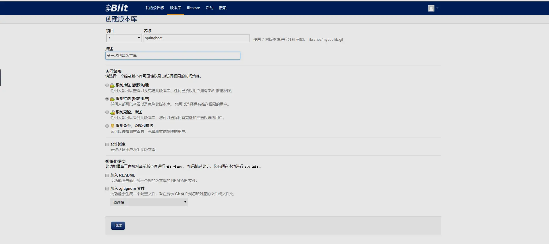 选择创建版本库