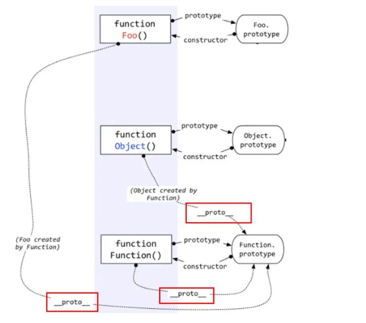 __proto__吗?function fn(x,y){ return x+y; } var fn1=new Function('x','y','return x+y;') 第一种是传统的函数创建方式,第二种是new Function创建的, 第二种不推荐 ---- fn.__proto__===Fuction.prototype对象的 __proto__指向创建它的函数的prototypeObject.__proto__=== Function.prototype var a = Function.prototype; //将Function.prototype看作一个基本对象a,此时: a.constructor === Function; a.__proto__.constructor === Object; //a.__proto__指向Object.pototype instanceof 是做类型检测的 "abc" instanceof String //false 左边不是Object类型直接返回false "abc".__proto__ instanceof String.prototypeinstanceof判断规则是