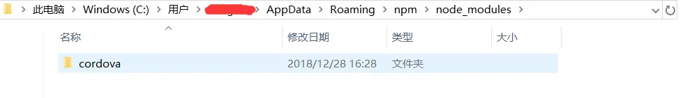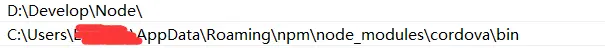 然后运行node.exe输入相应的指令 npm install -g cordova开始下载Cordova的内容,这里就直接等待读条就可以了!这里注意啊!刚开始安装完之后我找不到安装路径,如果你是默认的安装路径的话,应该在如下的路径下: