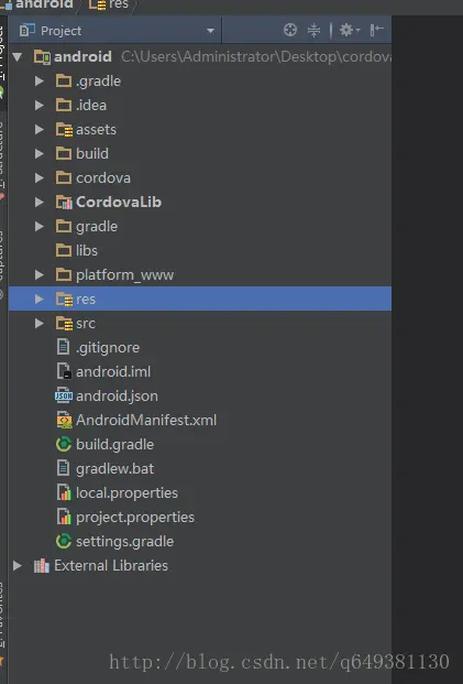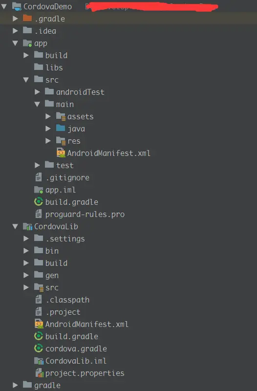我感觉这样清爽多了,其实就是把CordovaLib当成一个类库引入到项目,但是这里注意在主项目中assets中我把相应的配置都添加进去了!