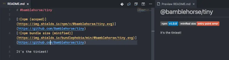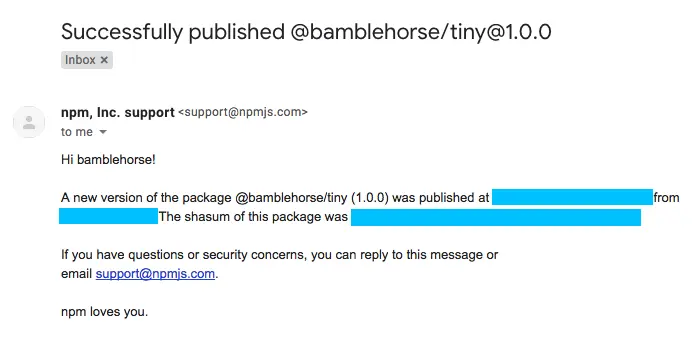 通过使用 @bamblehorse/tiny 代替 tiny,我们会创建一个在我们用户名 scope 下的一个包。这个叫做 scoped package。它允许我们将已经被其他包使用的名称作为包名,比如说,tiny 包 已经在 npm 中存在。