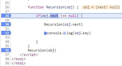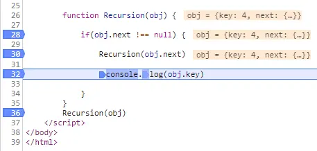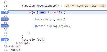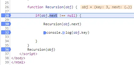 Recursion(obj.next) //2