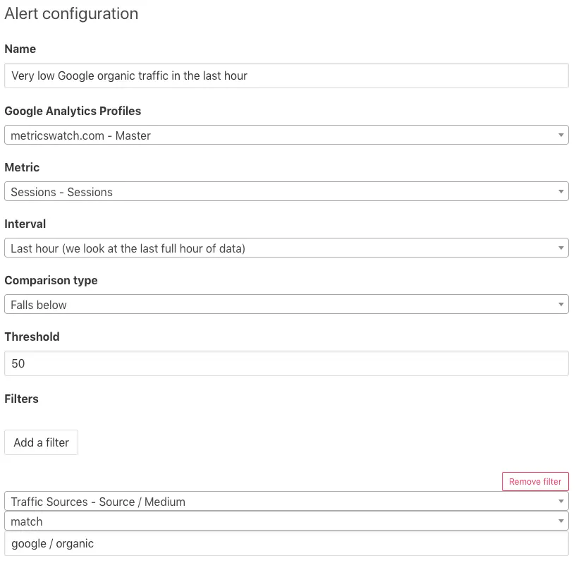 Go on and give the native Google Analytics alerts a shot. If it doesn’t answer all your needs, feel free to start a Metrics Watch free trial right away!