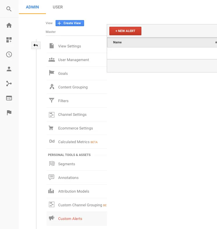 You have two ways to create new alerts in Google Analytics.