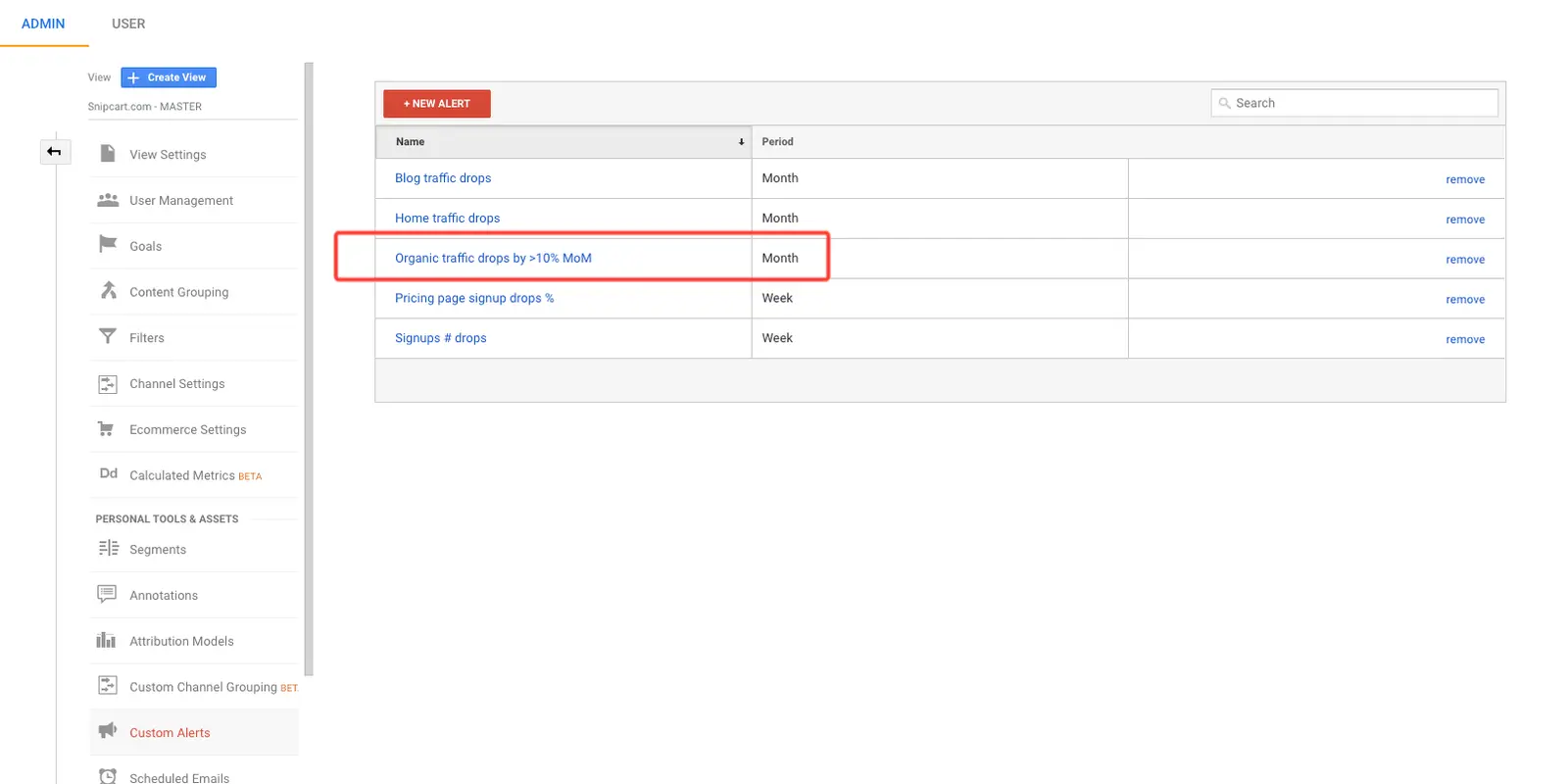 ^ Here are a few alert examples my good friends at Snipcart have set up. Let’s focus on organic traffic for now.