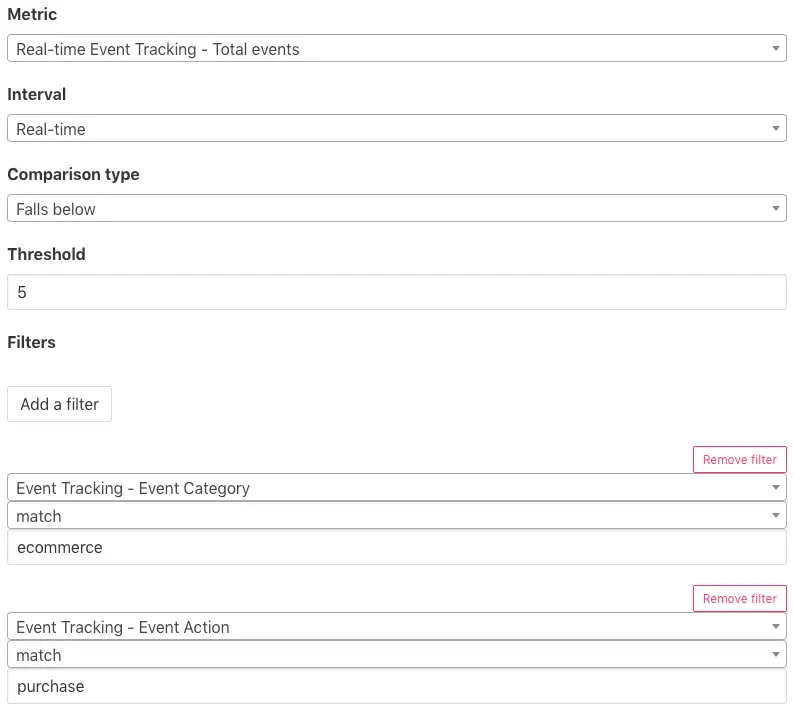 In native Google Analytics alerts, you can’t use a number of conversions as an alert threshold. You can only use conversion rate and value. But you should be fine with this in most cases.