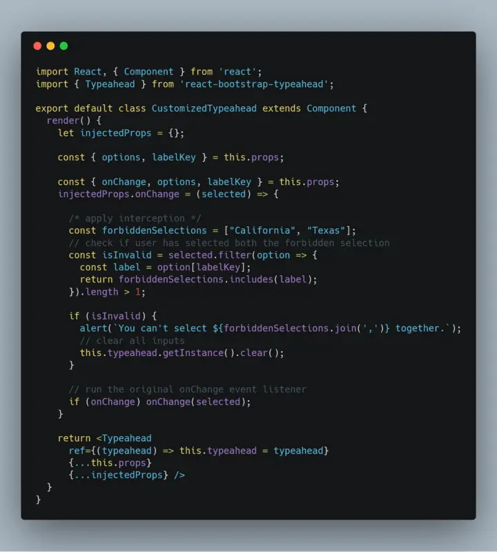 For example, we are going to customize the react-bootstrap-typeahead component.