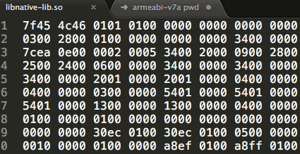 当然我们直接用文本编辑器打开so文件,看到的是如下二进制文件:
