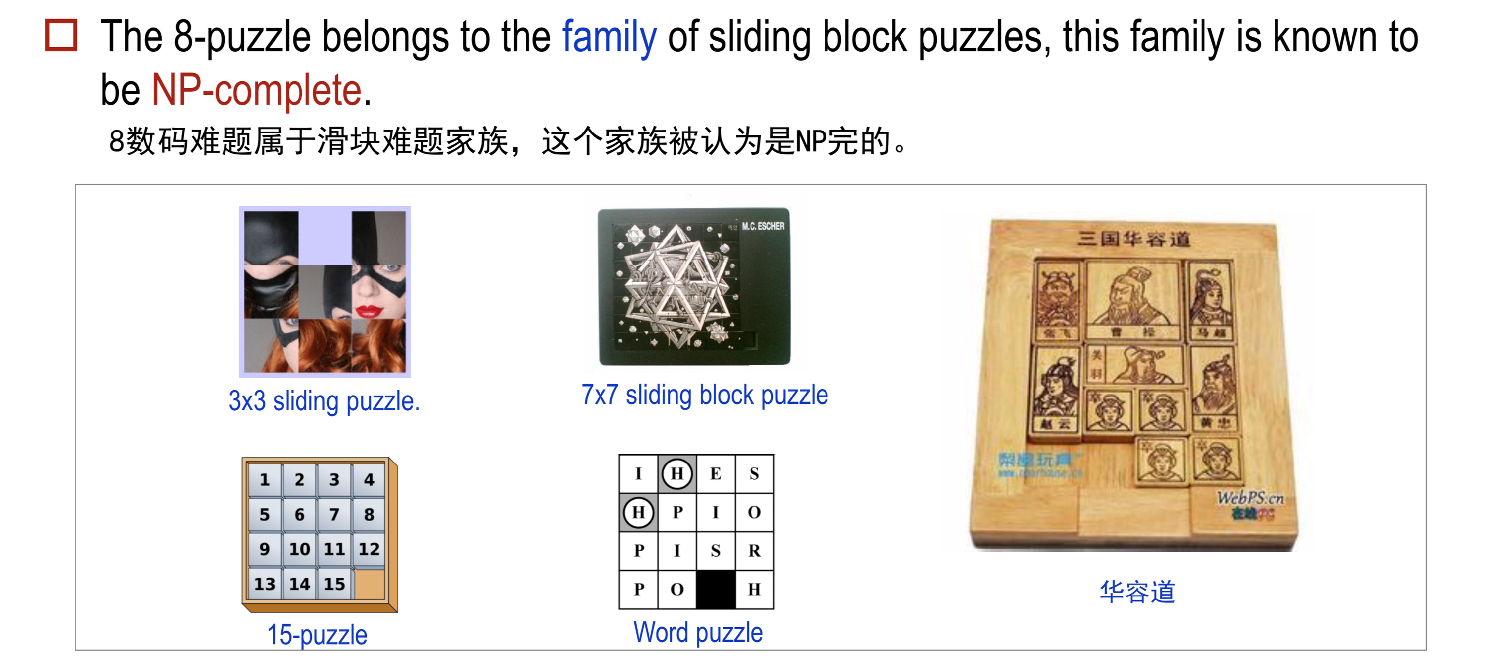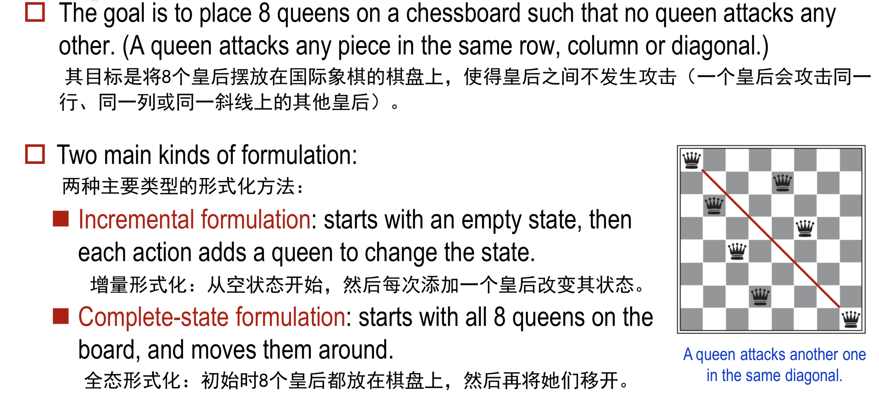 人工智能原理 - 通过搜索求解问题 已注销 2019-01-04 358 阅读1分钟 1 人工智能中的问题求解 1.1 简单的问题求解智能体算法 1.2 例:罗马尼亚部分公路图 1.2.1 相关术语 1.2.2 问题形式化的五个要素 2 问题实例 2.1 真空吸尘器世界 2.2 8 - 数码难题 2.3 Sliding block puzzles 滑块难题 2.4 8-queens problem 8皇后问题