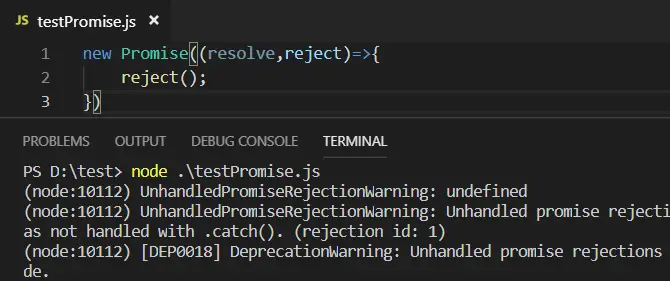 - 其实,一般情况下,规范的使用catch就不会有上述问题了。在reject的情况下,只要后面有catch处理,就不会抛出异常。没有catch的情况下,一般会往外抛异常