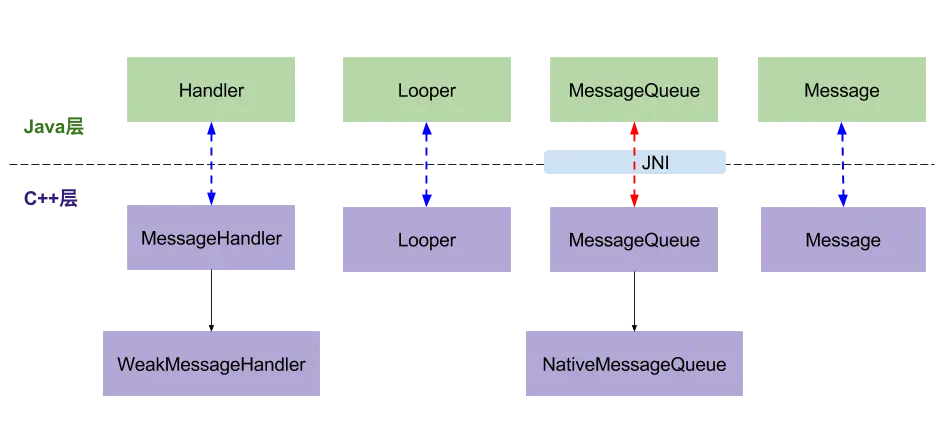 图片来自 MIUI 系统工程师 Gityuan 的 Android消息机制2-Handler(Native层)。