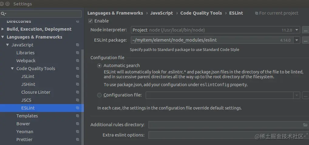 - automatic search:是webstorm自动查找项目中的.eslintrc文件