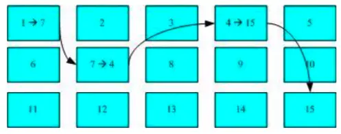 如图解:文件系统先格式化出inode与block区块,假设一个文件的属性和权限数据都存放在inode 4中,而这个inode记录了文件数据的实际存放点2,7,13,15这四个block号码,此时我们的操作系统就能狗据此来排列磁盘的阅读顺序了,可以一口气将四个block内容取出来,如图: