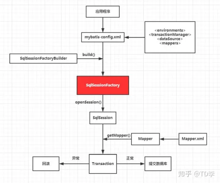 SqlSessionFactory开启一个SqlSession,通过SqlSession实例获得Mapper对象并且运行Mapper映射的Sql语句。
