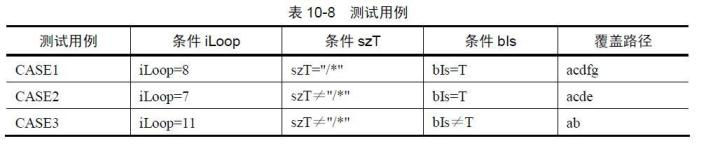 如图10-8 所示的程序流程图,只要设计三个测试用例即可,执行的路径分别为ab、acde 和acdfg。