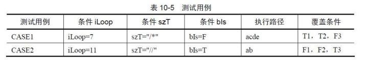 接着对条件进行组合,保证每个条件的取值以及每个分支至少被执行一次,再根据组合条件写出测试用例。在本例中只要两个测试用例即可覆盖到每个条件的取值情况,测试用例见表10-7。