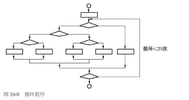 路径覆盖看似可以完成覆盖程序中的所有路径,但对于一个复杂的循环语句,则很难全面覆盖所有执行路径。如图10-9 所示的循环程序,其包含的不同执行路径条数达520,假定对每一条路径进行测试需要1 毫秒,一年工作365×24 小时,要想把所有路径测试完需3170 年。