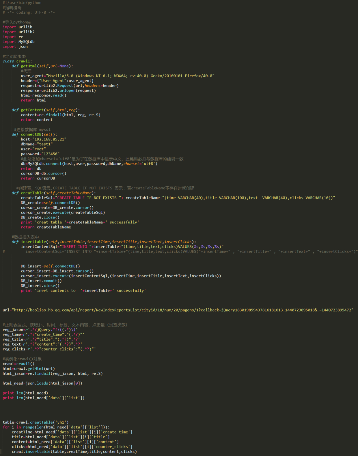 以下是完整的获取内容并存储到数据库的思路及源码。