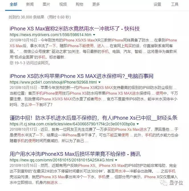 但有人拿着用水冲了一下新买的iPhone XS Max ,手机就进水不能使用了。