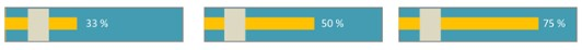 每个进度条的长度通过将相应任务栏的长度乘以进度的百分比来确定,在上述情况中,我们可以通过将进度条的长度与相应活动条的长度相关联来粗略估计进度百分比。例如如果活动进度为33%、50%和75%,我们可以通过添加文本标签来增强显示效果:
