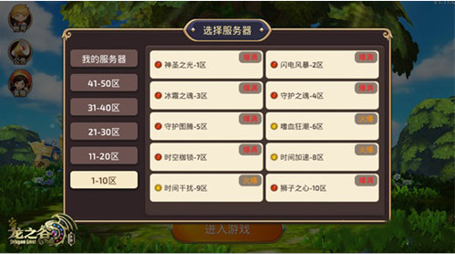(图:《龙之谷手游》服务器选择界面)