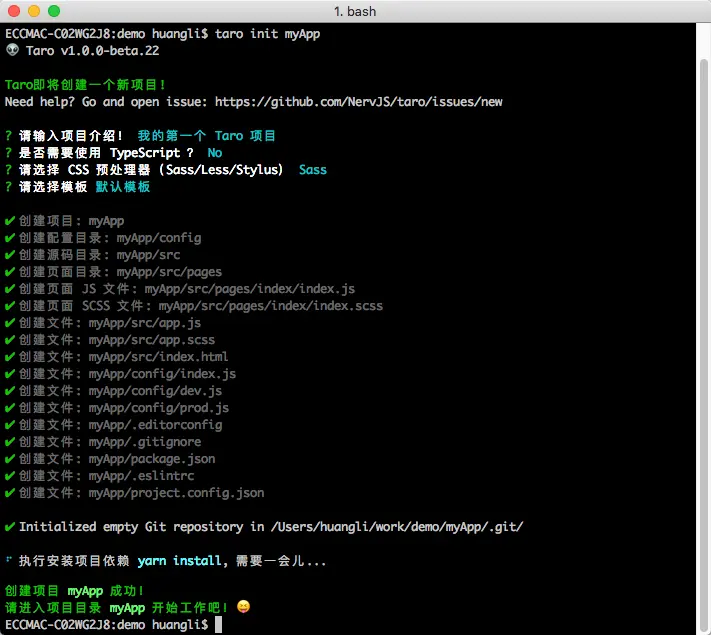 $ taro init myApp