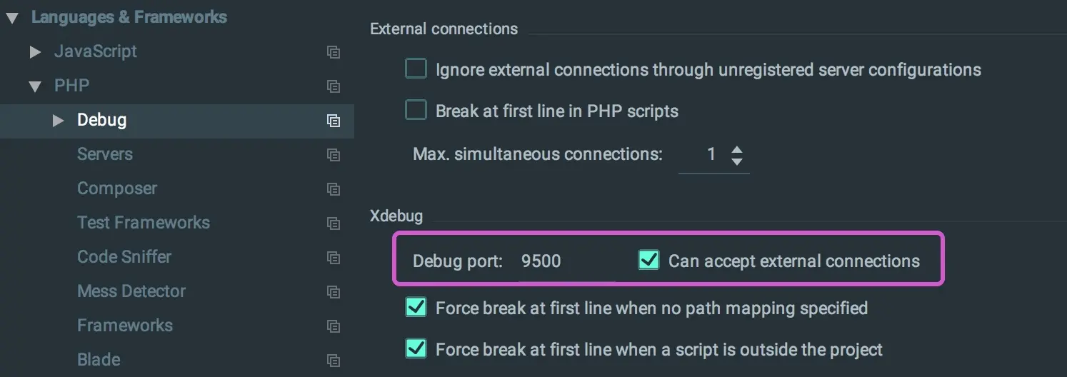 我们这里监听的是 9500 端口, 和 xdebug 配置监听数据端口一致