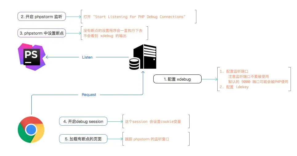 , 一种方式是用外部设置的 session, 另外一种是在 phpstorm 中配置页面入口然后使用内置的监听来访问, 原理相同, 下面我们从原理开始讲解