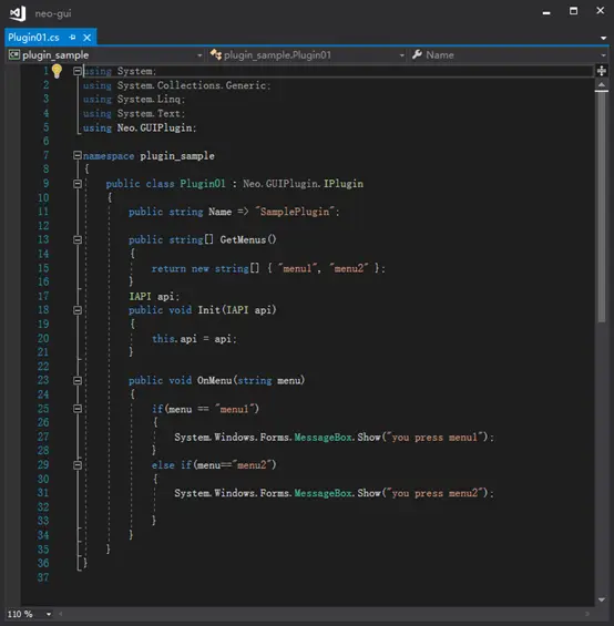 最后在NEO-GUI动态增加菜单,按下菜单时呼叫对应的插件。