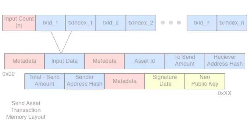 如果详细地浏览每一部分,就会发现交易从高度最低的内存地址(0x00)开始,一直到最高的内存地址(0xXX),在这里XX是以十六进制表示的交易长度。