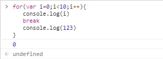 // 第三次循环 i = 4 遇到了break