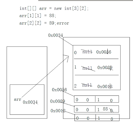 13、二维数组的内存方式:二维数组里面储存一维数组的地址,变量储存二维数组的内存值。
