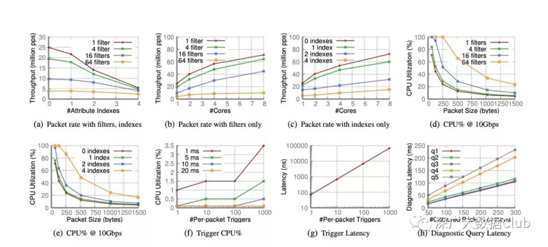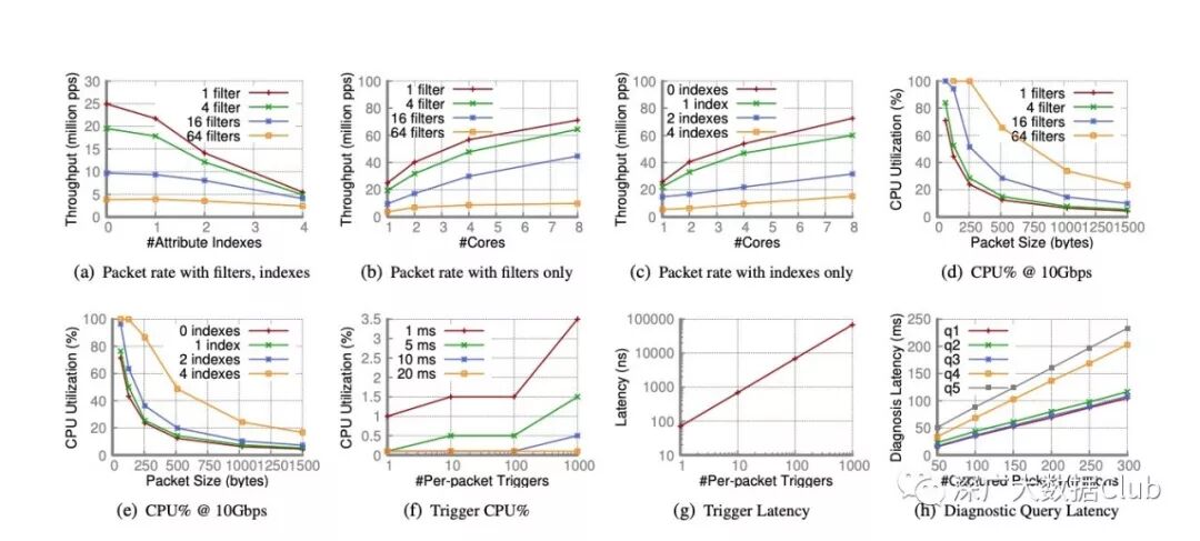 网络监控和诊断框架,Confluo能够在单个核心上以线速(10Gbps链路)执行数千个触发器和数十个过滤器。