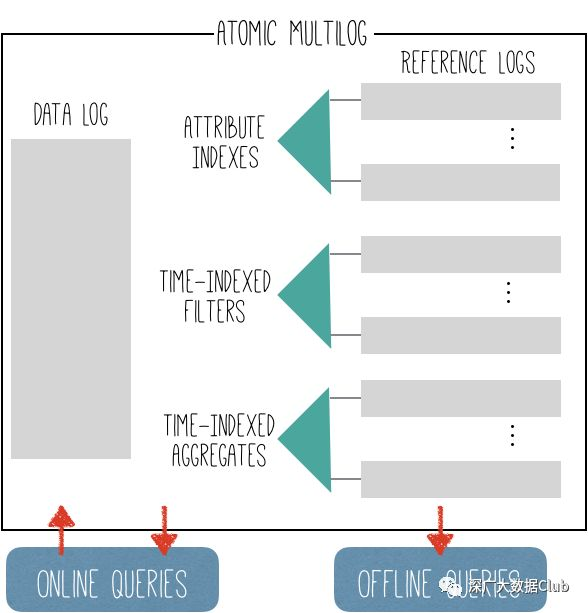 Atomic MultiLogs与数据库表的接口类似。为了存储来自不同流的数据,应用程序可以创建具有预定义模式的Atomic MultiLog,并编写符合模式的数据流。然后,应用程序在Atomic MultiLog上创建索引,过滤器,聚合和触发器,以启用各种监视和诊断功能,如上所述。