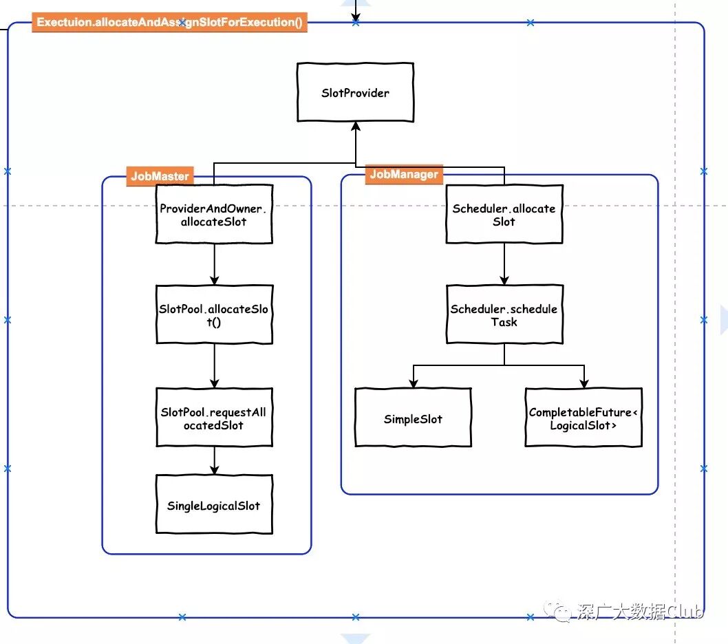 ProviderAndOwner.allocateSlot --> SlotPool.allocateSlot() --> SlotPool.requestAllocatedSlot return SingleLogicalSlot