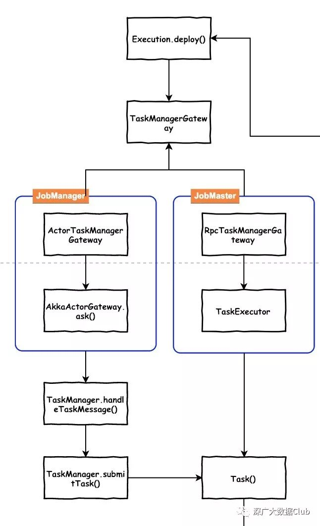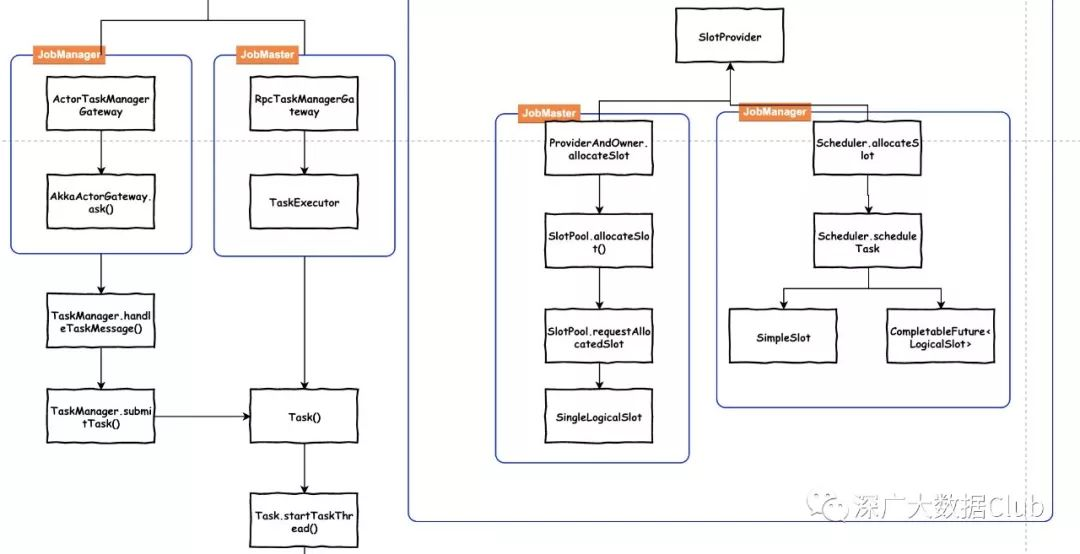 有所不同的是TaskExecution用TaskSlotTable来保存Task。而TaskManager用HashMap 来存储ExecutionAttemptID及Task信息的映射关系。