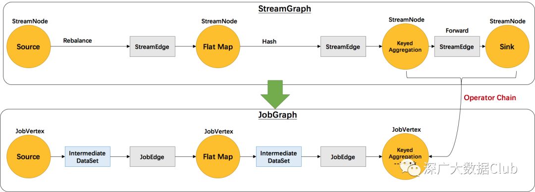 先来看下StreamGraph与JobGraph的转换图。