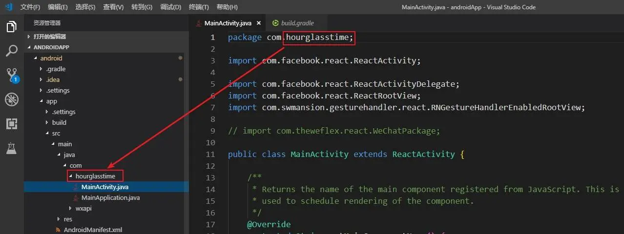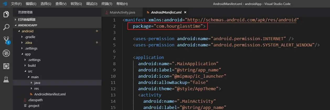 修改两个package的值package = 'com.hourglasstime'
